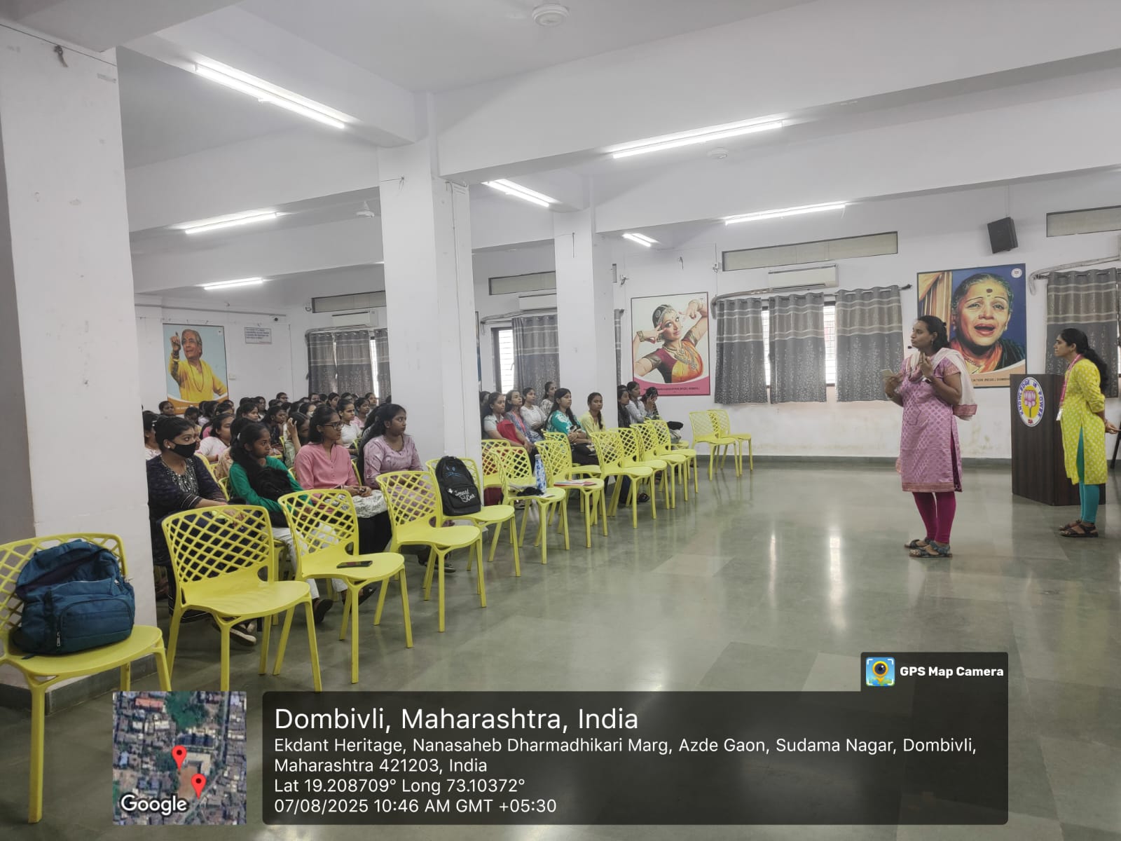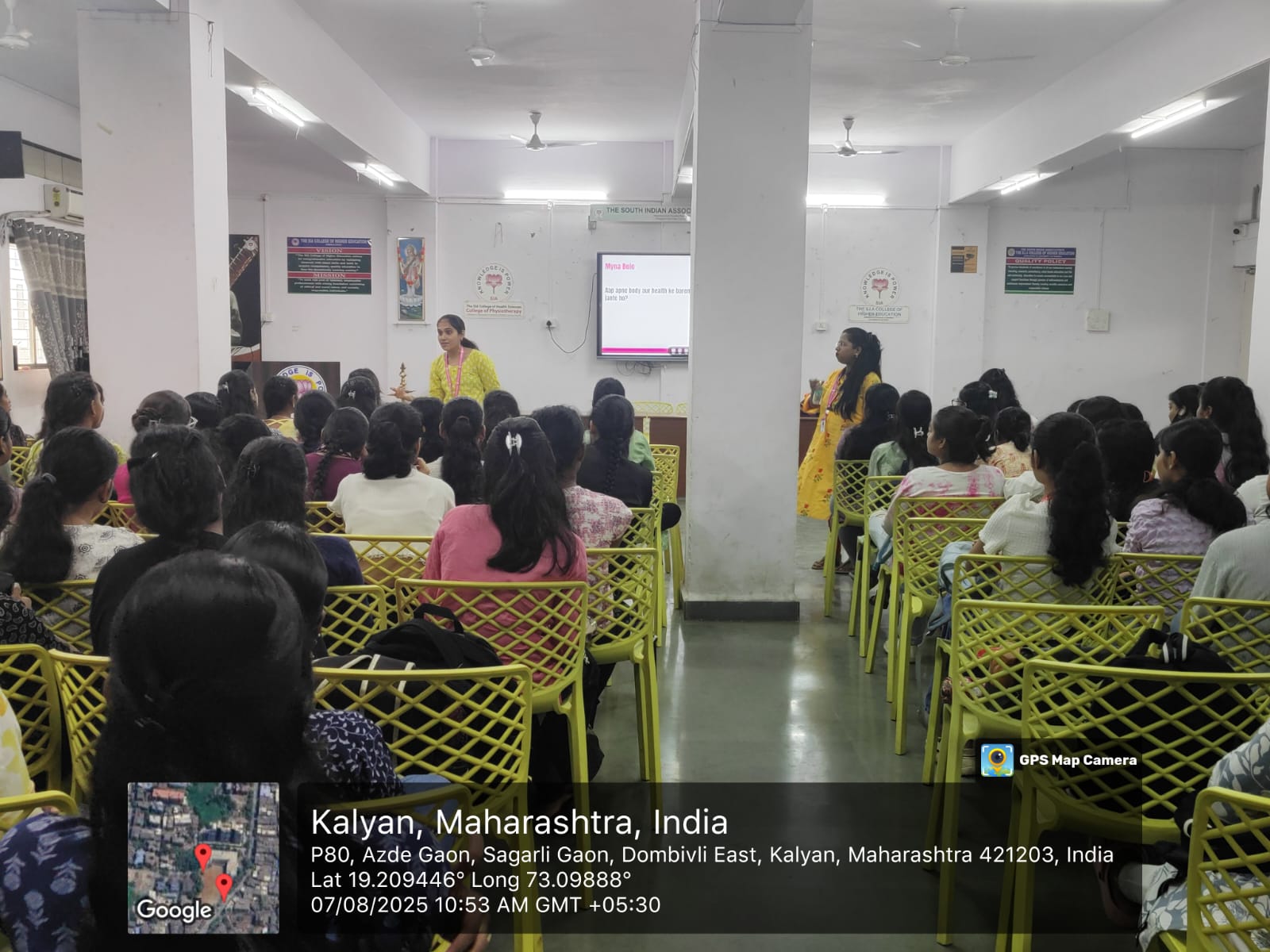 A Health Awareness Session for Female Students was organised by Women Development Cell in association with Myna Mahila Foundation on Thursday, 7th August 2025 at 10.30 am in the auditorium. Resource person for the session was Mrs. Pratibha Bhurki of Myna Mahila Foundation on Female students of SY and TY BCOM and SY IT participated in the event.
