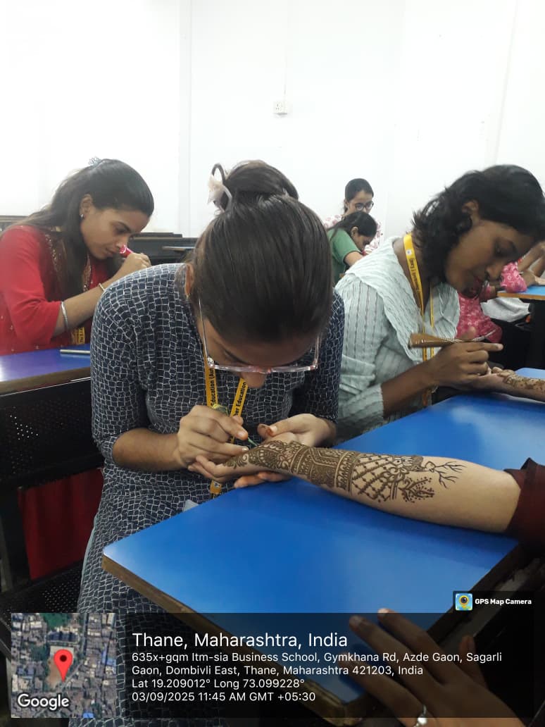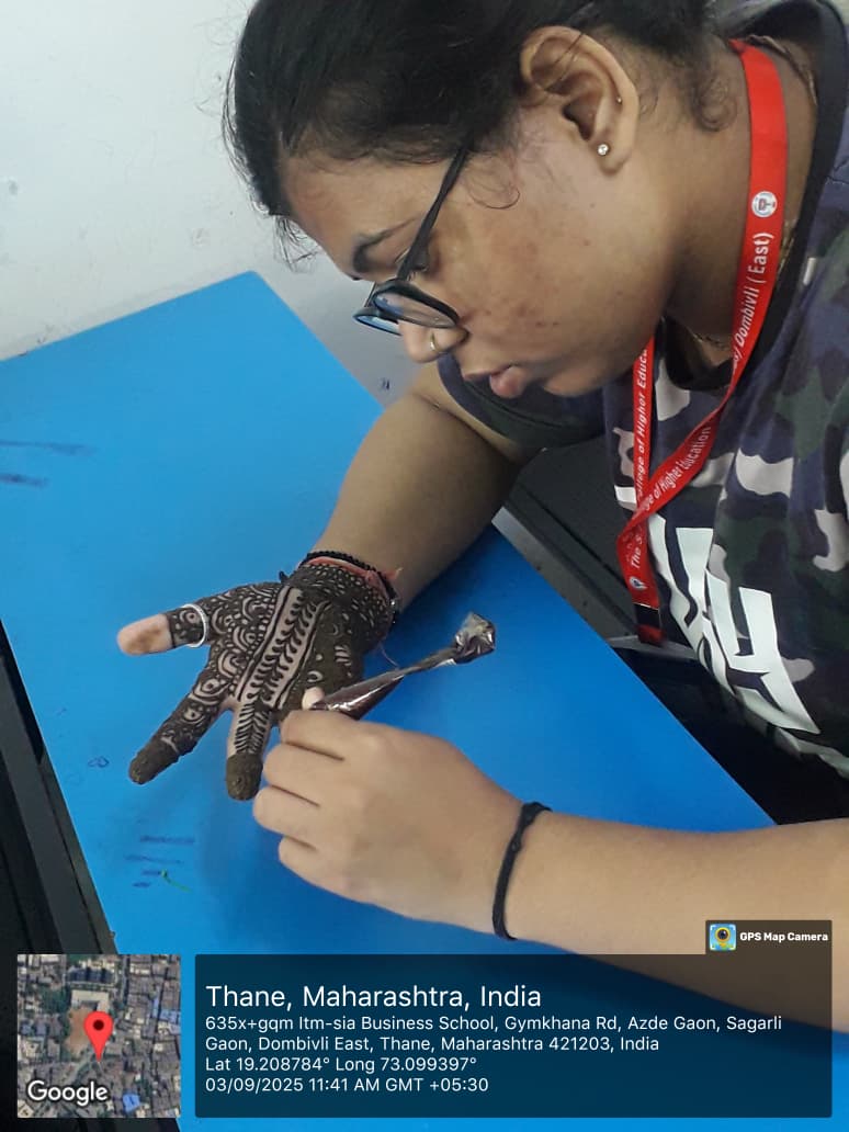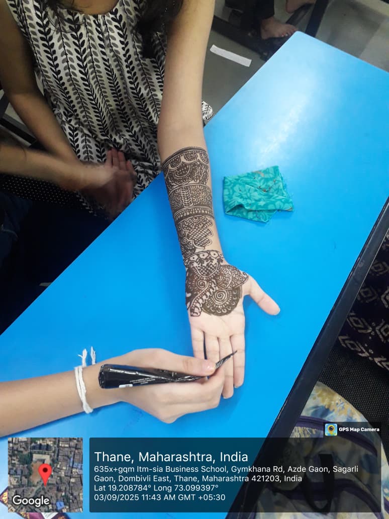 The main purpose of the competition was to provide students with a platform to showcase their artistic and creative talents, foster a connection to cultural heritage, and engage in a fun activity that enhances personality development and campus involvement. Students enthusiastically participated and displayed beautiful mehndi designs based on different themes. Mehndi, being an integral part of Indian culture, not only adds beauty but also reflects traditional sentiments, beliefs, and the medicinal value of herbs.